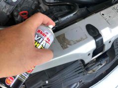 Eddig nem igazán találtunk megfelelő módszert, továbbá nem élvezett prioritást: most sikerült eltávolítani azokat a matrica- és ragasztómaradványokat, amelyek a motortér peremlemezén éktelenkedtek.