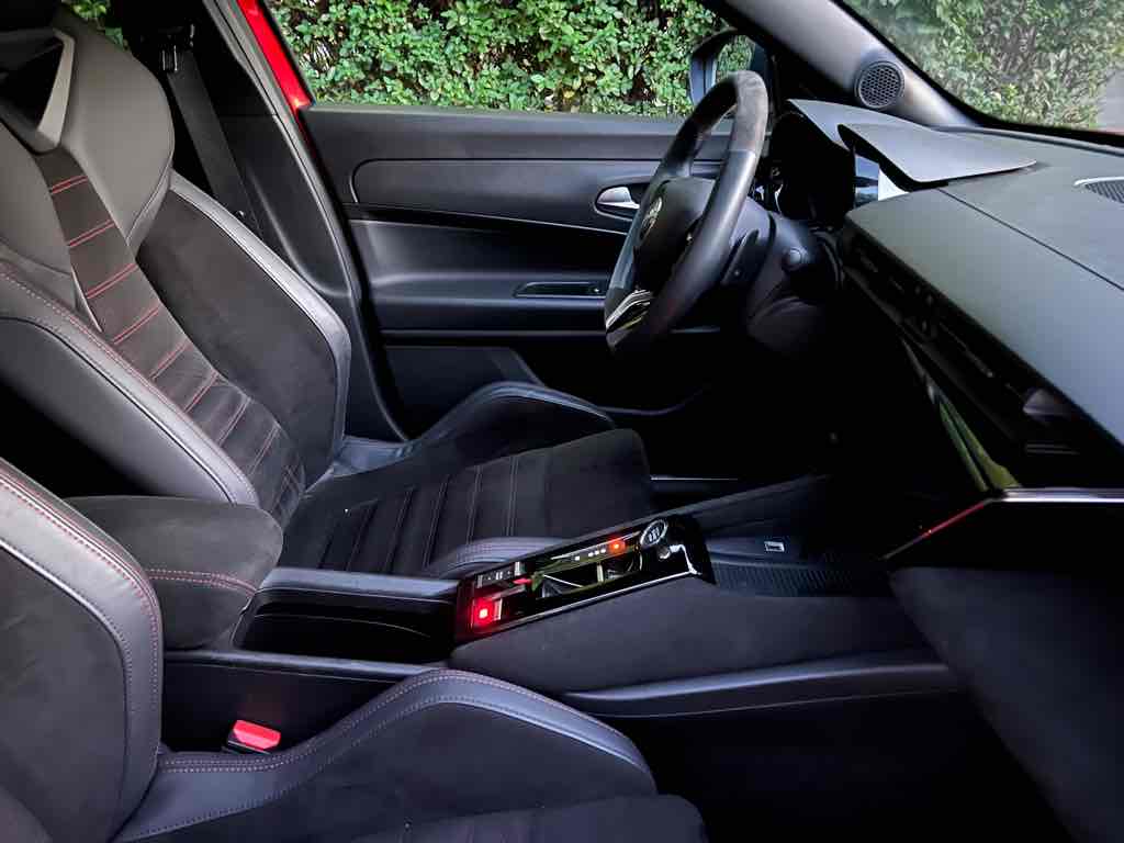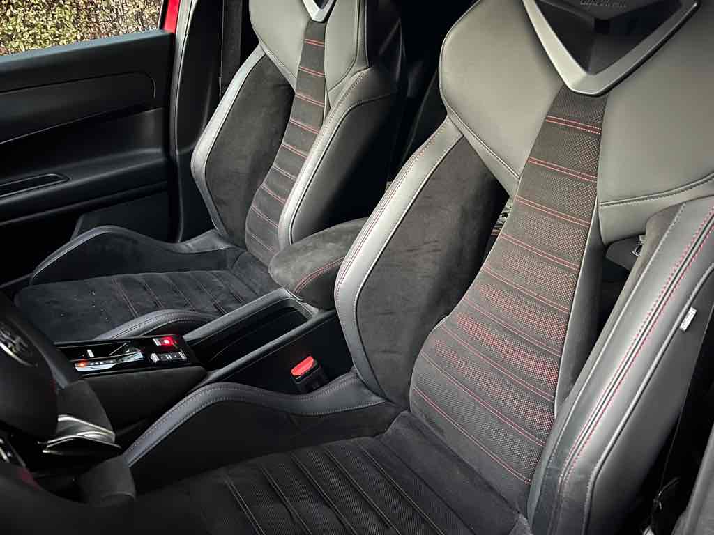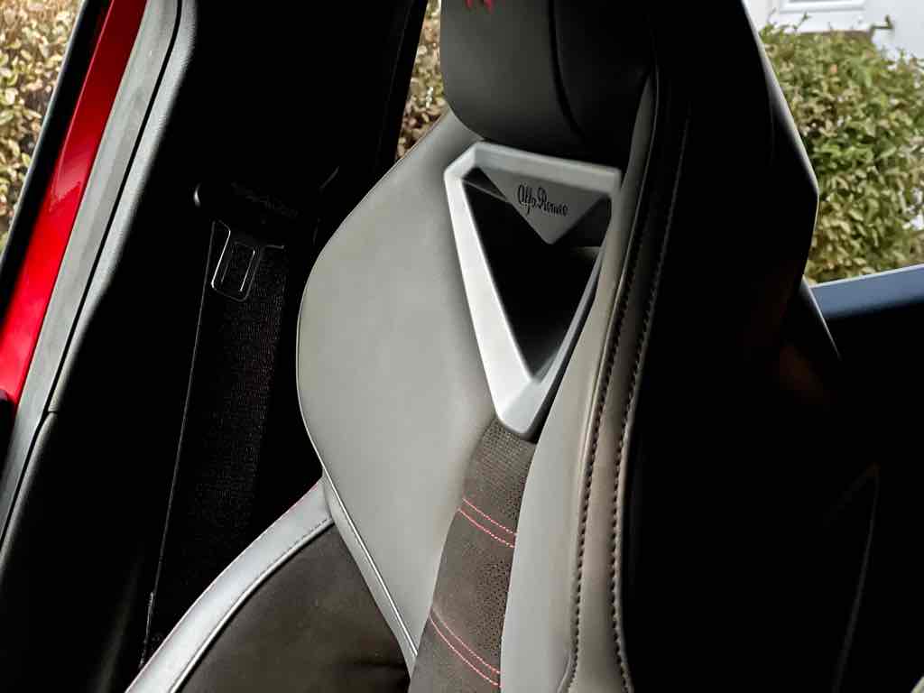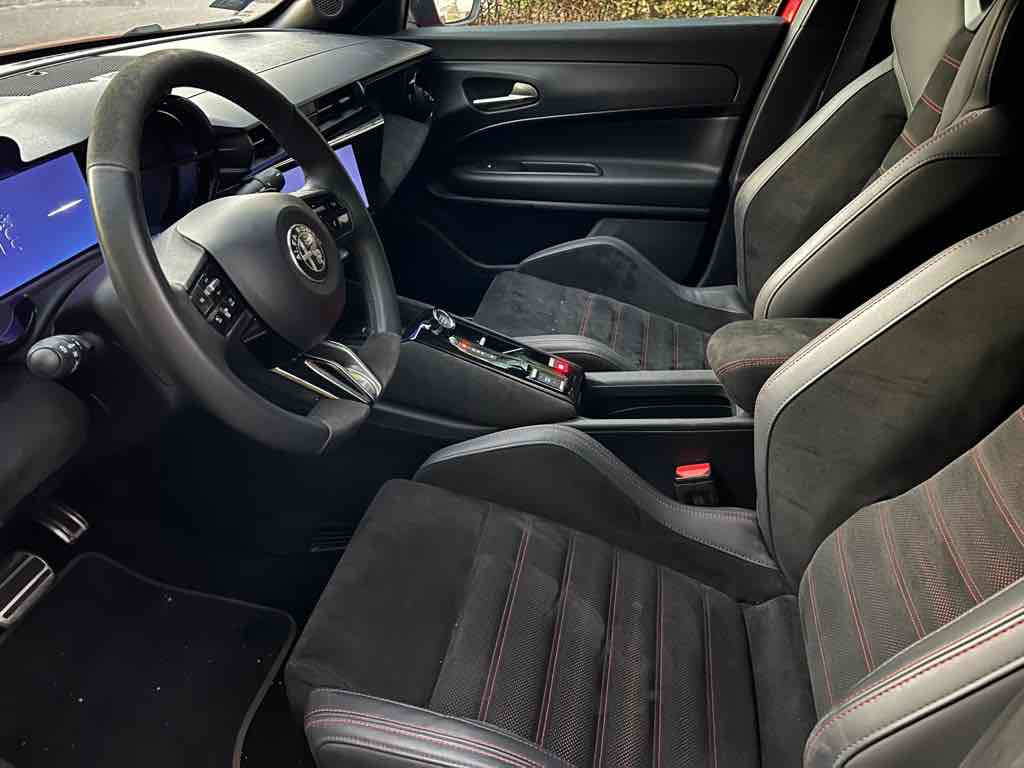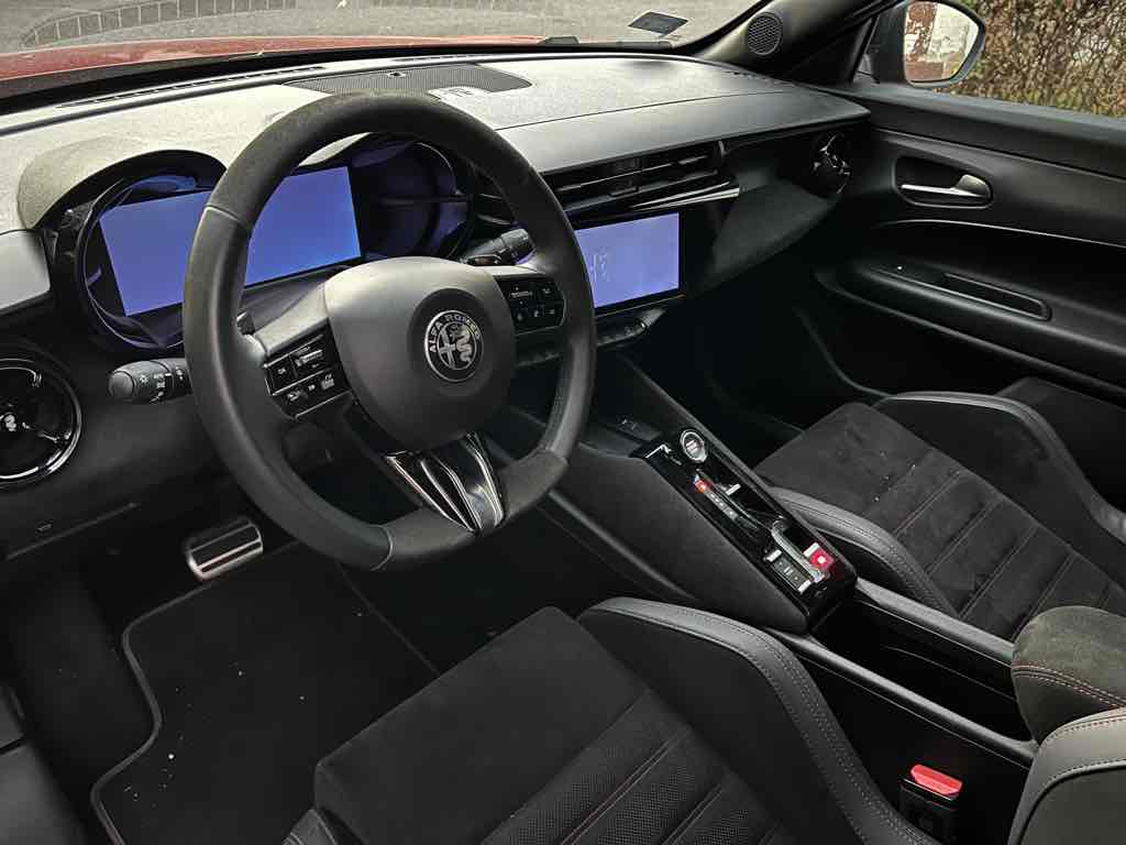 Az utastér elrendezése egyértelműen vezető-orientált, a műszerfal enyhén a sofőr felé fordul, az Alfa klasszikus kerek légbeömlőkkel és sportos hangulatú műszeregységgel. Elöl jó az üléshelyzet, a kormány és az ülés széles tartományban állítható, így különböző testalkattal is könnyű kényelmes pozíciót találni.