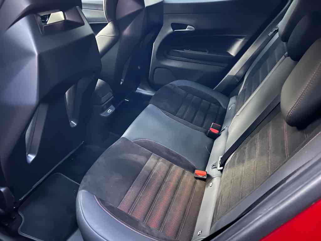 A Speciale felszereltség részeként két 10,25 colos kijelzőt kapunk – digitális műszeregységet és központi érintőképernyőt – Apple CarPlay és Android Auto támogatással, illetve többféle színű hangulatvilágítással kombinálva. Az anyagminőség vegyes: a formavilág és a kormány, illetve bizonyos felületek puhább borítása kifejezetten igényes érzetet ad, de a kategória és az ár ismeretében belül még mindig érződik némi egyszerűbb, keményebb műanyag a kevésbé szem előtt lévő részeken.